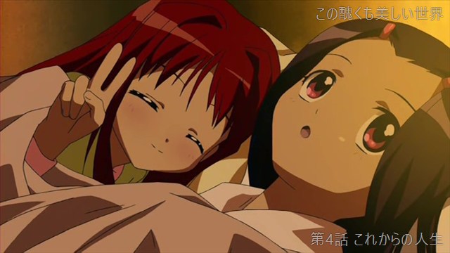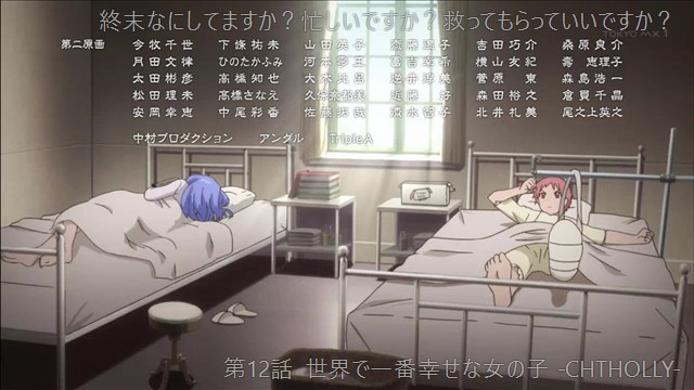 コメント: 第10話と打って変わって今度はナナがミチルを介抱する。衰弱する様がしっかり描かれていて、ネタバレしたくないので詳しく書きませんがかなり面白いアニメだったのでおすすめです。