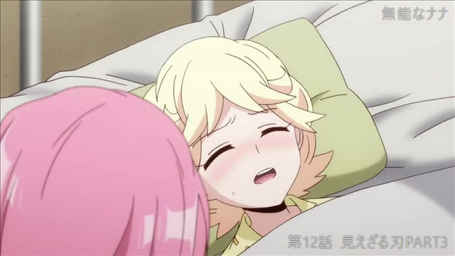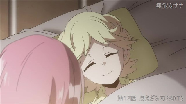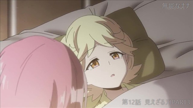 コメント: 謎の新キャラと戦って負傷してしまったナナを介抱するミチル。ナナがミチルに向ける疑心暗鬼に印象操作されて、最後の最後まで私も疑ってしまって後味が悪いアニメでした。とても面白かったです。